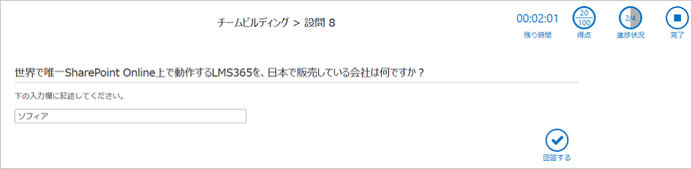 テスト教材への回答に対して制限時間を設定することが出来ます。また、設定した時間は受講者に表示させることも可能です。