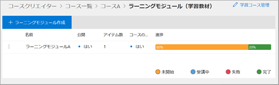 管理画面でのラーニングモジュール管理のユーザーインターフェース